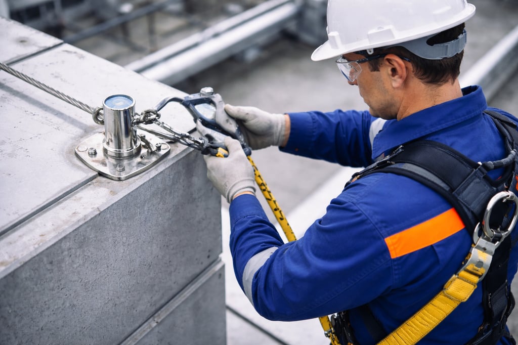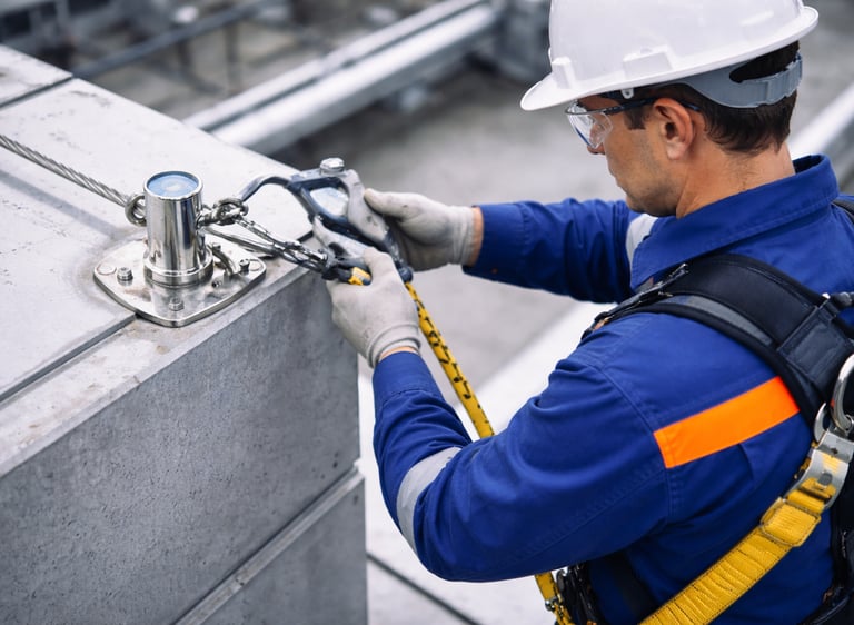 Projeto e inspeção de sistemas de proteção contra quedas conforme normas técnicas de segurança.