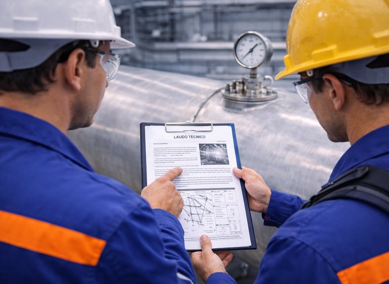 Avaliação técnica de equipamentos industriais com emissão de laudos e recomendações de segurança.